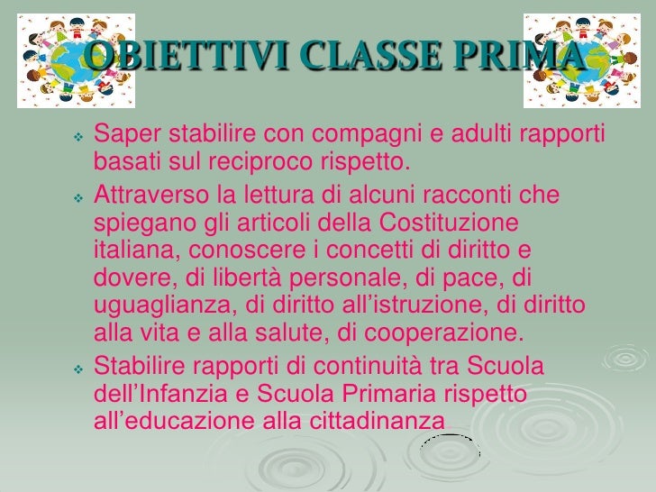 Il percorso didattico che trovi pubblicato nel sito è coperto da copyright, sono solo utili a scopo didattico personale, sono vietati altri scopi Da punto che la disciplina Cittadinanza e Costituzione è ormai obbligatori nella scuola Primaria e non fratello trovato materiale da nessuna parte, ho deciso di creare personalmente un PERCORSO DIDATTICO, lo sto. Un percorso per l' avvio alla conoscenza dell'origine e dei princi della Costituzione Italiana Presso la scuola primaria a tempo pieno di Ospedalicchio, nel. Cittadinanza e costituzione scuola primaria – classe quinta competenze obiettivi di apprendimento strategie didattiche descrittori dei livelli di competenza conoscenze abilita’ livello e livello m livello b sviluppare la propria identitÀ e il senso di appartenenza a un gruppo identitÁ gruppo la mia nazione le principali forme di.
