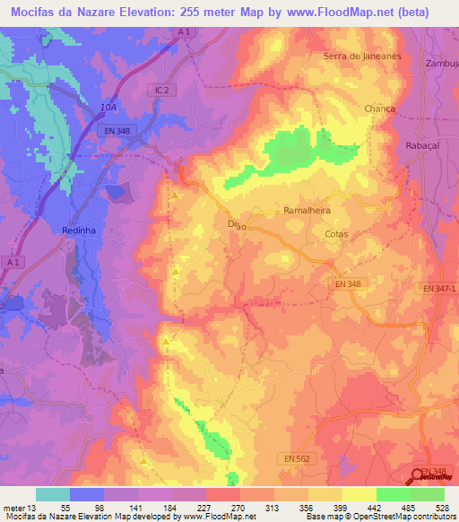 Elevation Of Mocifas Da Nazare Portugal Elevation Map Topography Contour