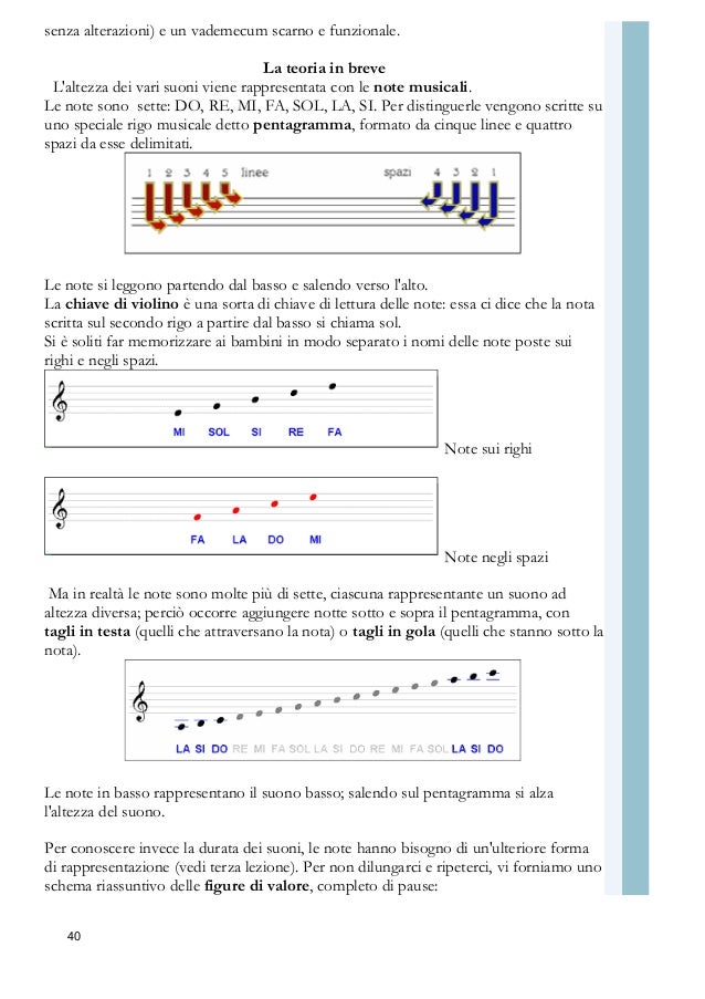 Corso di pianoforte per bambini e principianti Con facili spartiti scaricabili di melodie popolari Note colorate, immagini, audio mp3, diteggiatura. Real Piano, un'app che simula una tastiera con degli strumenti musicali virtuali per aiutarti a imparare gratuitamente accordi e note musicali!. Per ricapitolare possiamo dire che le note si possono scrivere all'interno dei 4 spazi del pentagramma o sopra le 5 linee di esso Si possono scrivere anche al di fuori del pentagramma, aggiungendo linee sulla testa o sotto la gola della nota stessa Le note negli spazi sono FA LA DO MI Invece le note sulle linee sono.