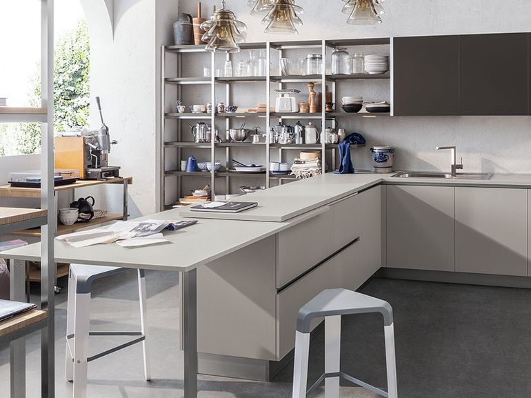 Da un cassetto incernierato si estrae un tavolo penisola dalle dimensioni di 600x900x919mm Una soluzione salvaspazio molto versatile per impreziosire e rendere ancora più funzionale la propria cucina a scomparsa costituita da un piano con lato 90×90 – 10×10 – 127×95 mm, sp 75 mm Il bancone. – Cucina con penisola con dotazioni a scomparsa Un'area living attrezzata con dotazioni a scomparsa La cucina con penisola in Caesar Brown Stone è personalizzata con un tavolo estraibile In questo open space nel centro di Roma TM Italia ha realizzato il living e la cucina con penisola. Scarica il catalogo e richiedi prezzi di T45 cucina a scomparsa By tm italia cucine, cucina con penisola, Collezione t45.